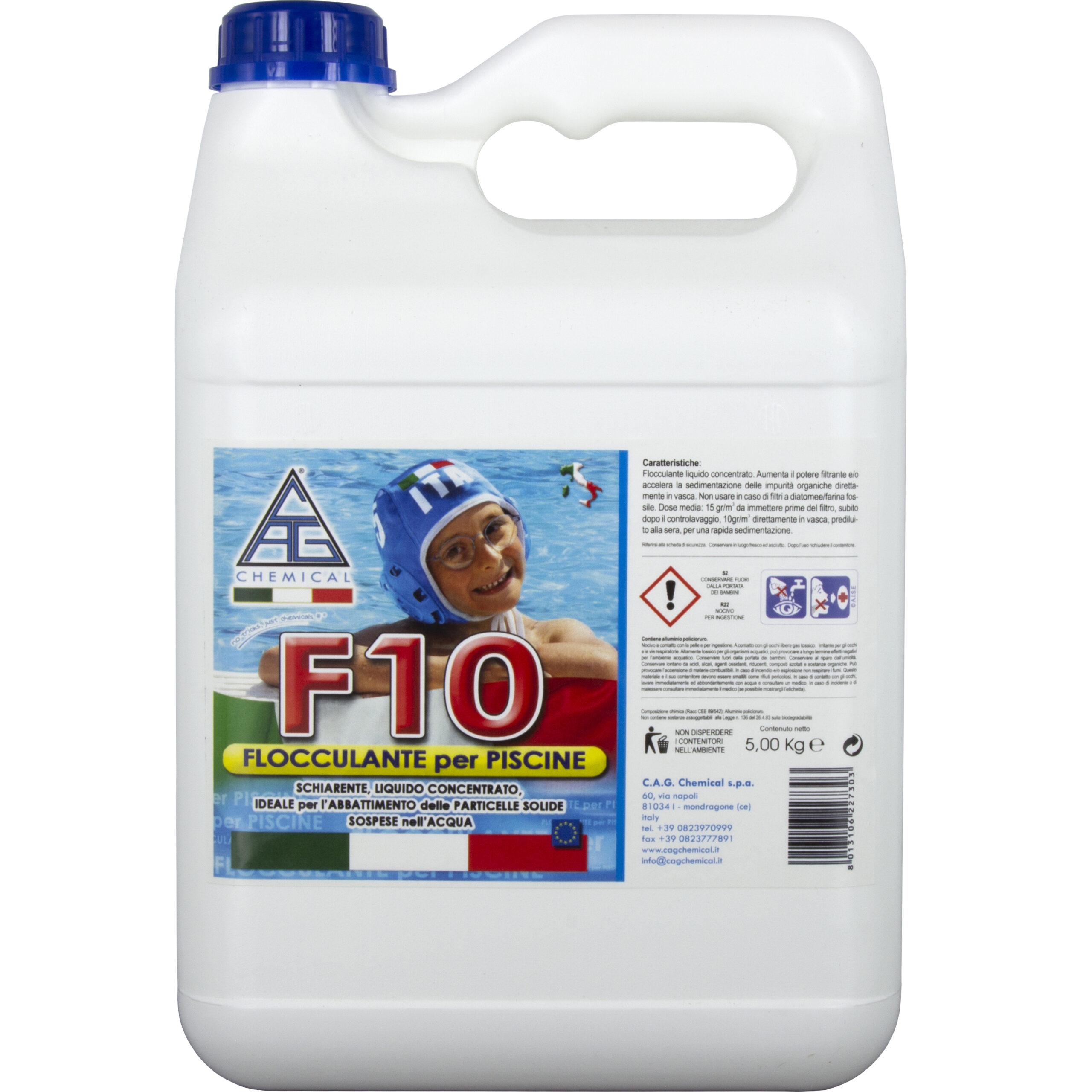 per rendere limpida l’acqua, facendo precipitare le particelle organiche in sospensione.Confezione da 5 kg