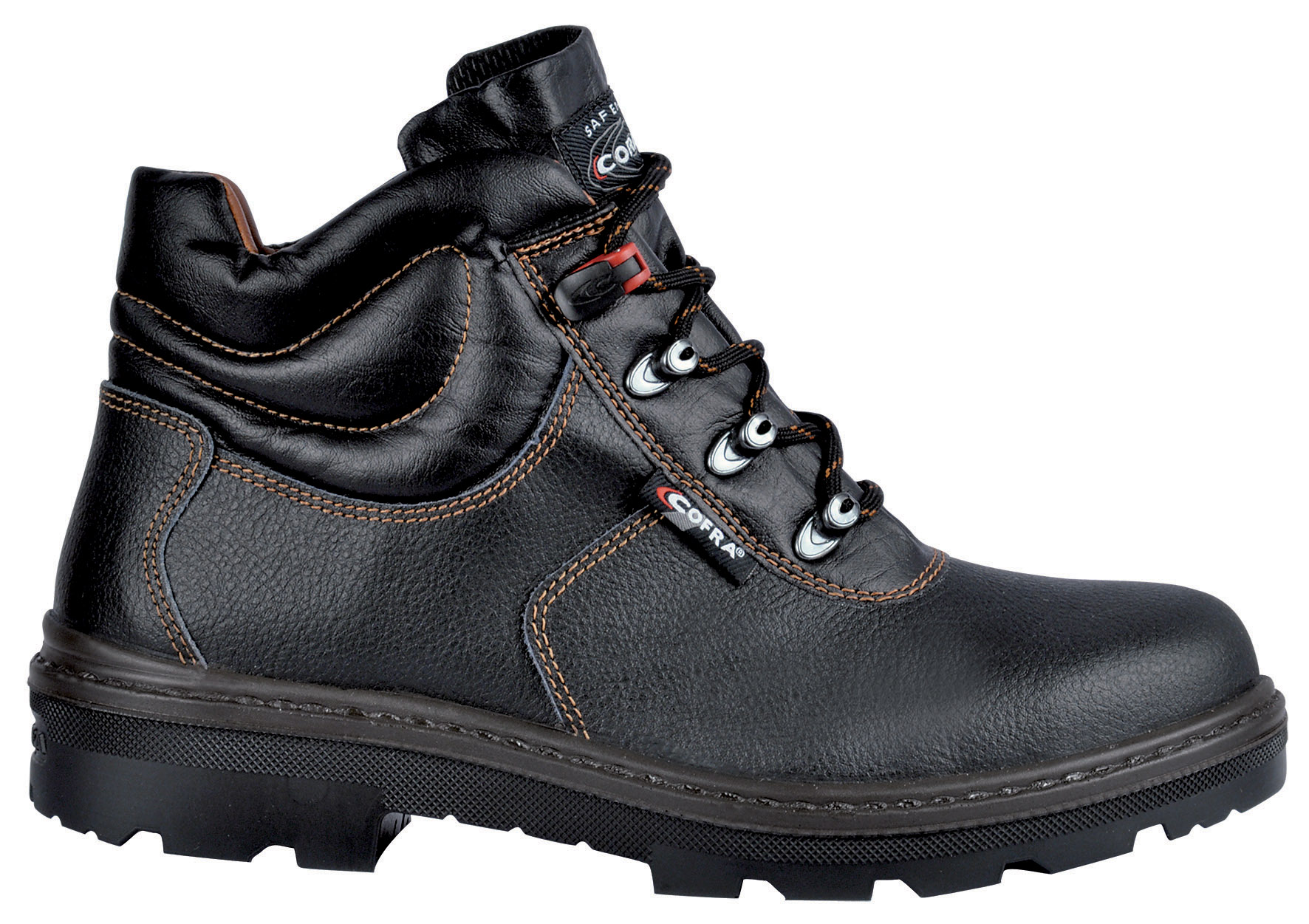 Mod. PARIDE BIS S3 SRC tipo alto, soletta in tessuto antiperforazione, tomaia in pelle al cromo, puntale in acciaio, paramalleolo imbottito, suola in poliuretano bidensit? stampata IDEAL. Sfilamento rapido. Complete di tallonetta antimicrobica trasp